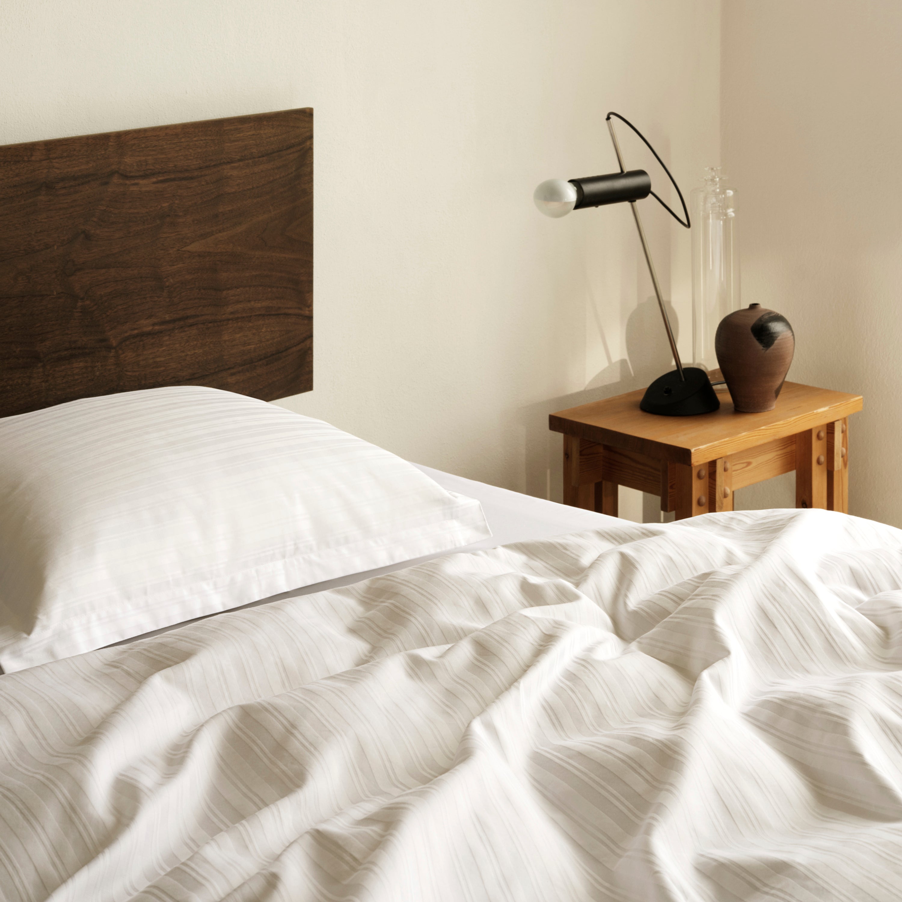 Damaskvævet hovedpudebetræk i et klassisk stribet mønster. Pudebetrækket lukkes med kuvertlukning.