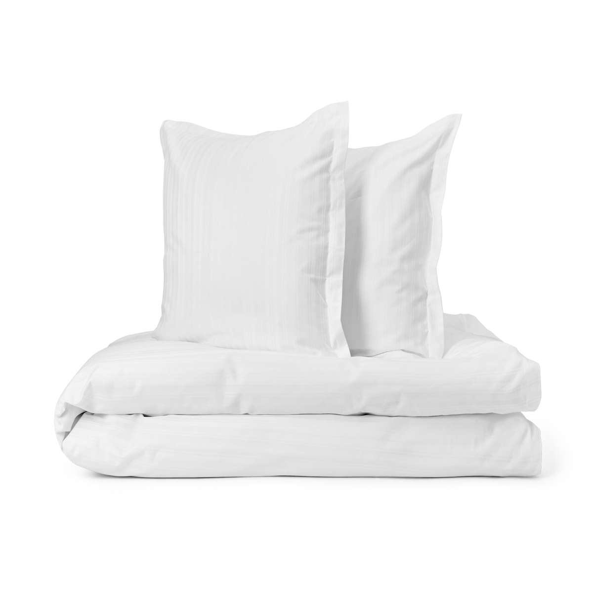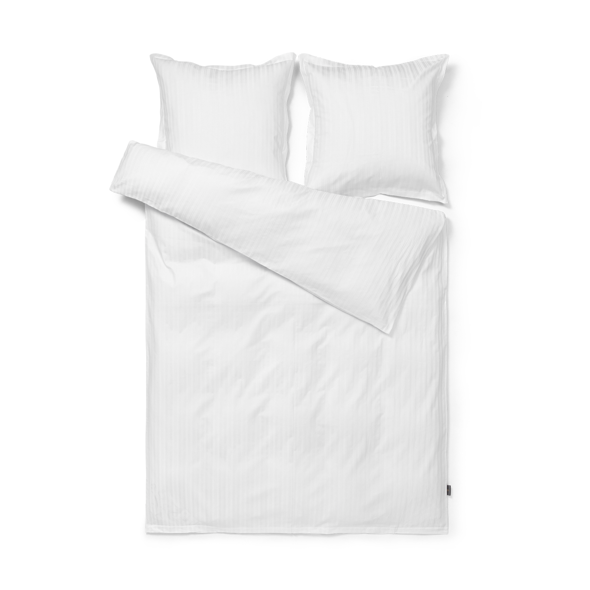 I hvid er sengetøjet vævet i monokrome hvid på hvid-striber, som med deres forskelligartede vævninger skriver sig ind i en tradition, der trækker tråde tilbage i tiden.