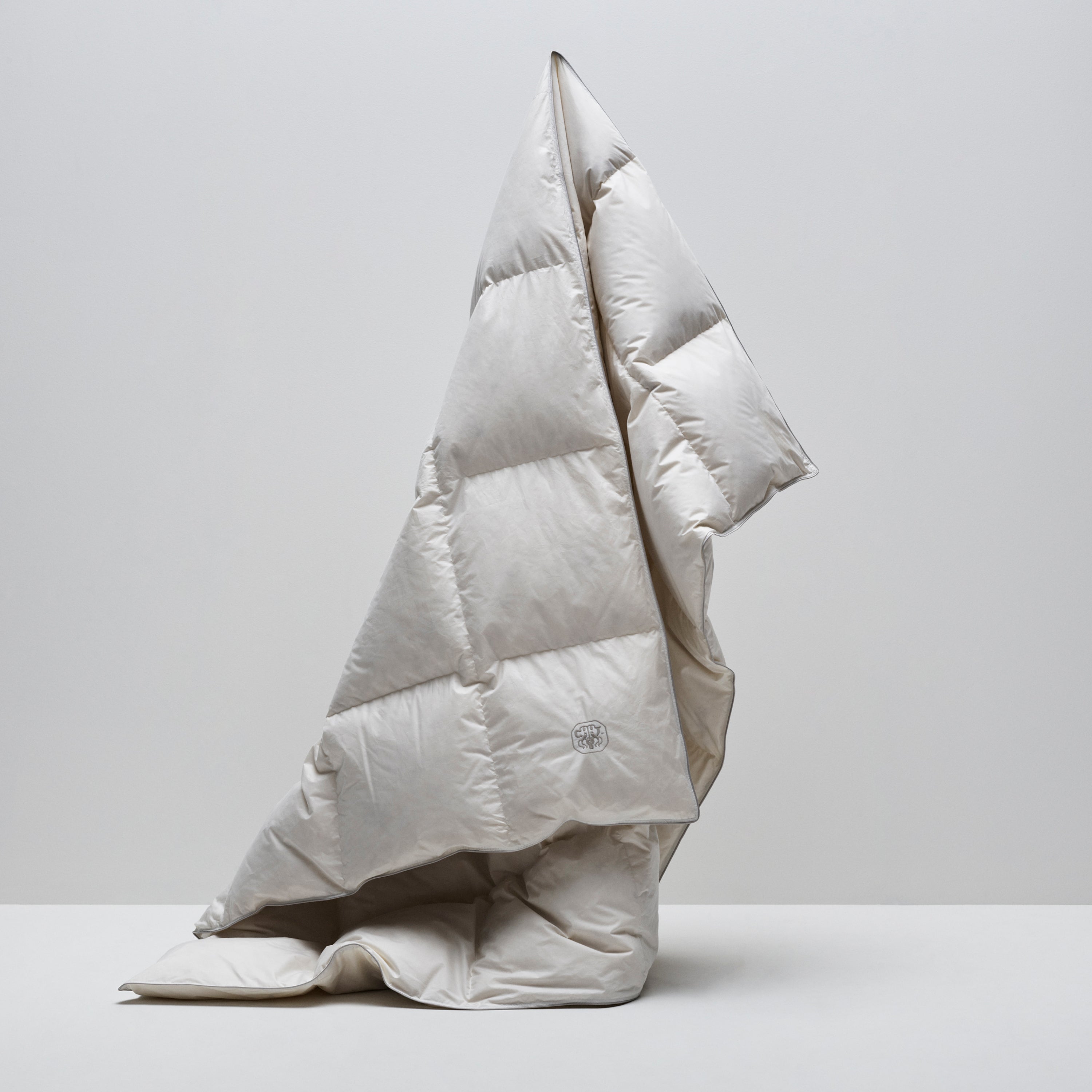 Dynen bærer Georg Jensen Damasks ikoniske logo som et diskret broderi – et symbol på kvalitet og omhyggelighed.