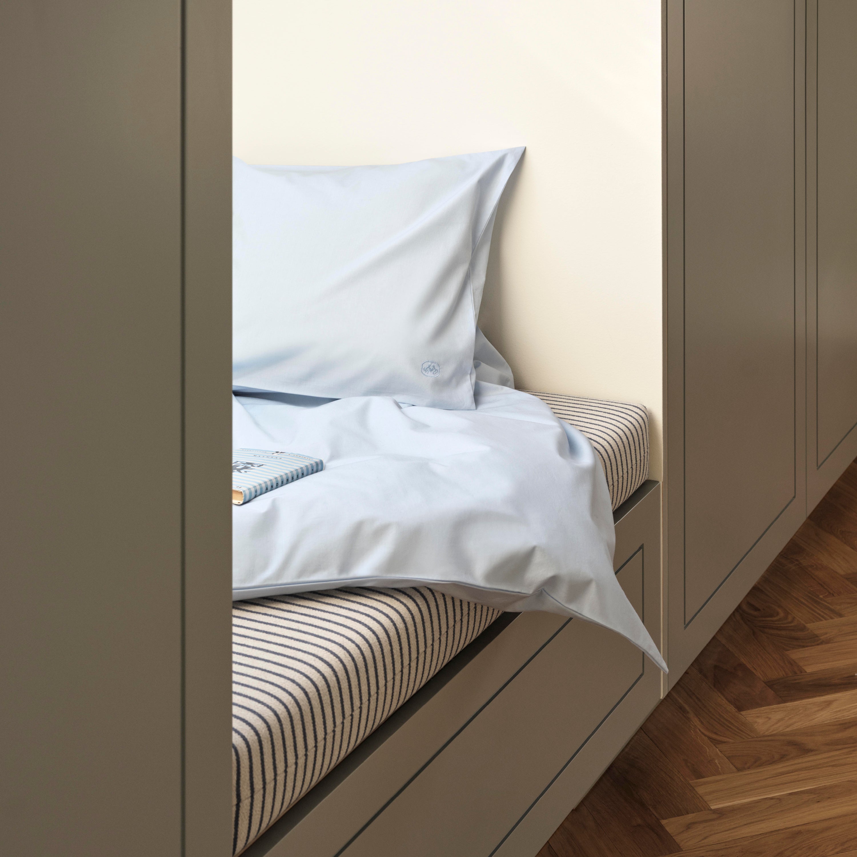 Percale er kvalitetssengetøj til børn. Det bløde sengetøj er vævet af 100 % økologisk bomuld og har et klassisk og helt enkelt design med et lille broderet logo som fin detalje. Percalevævningen gør sengetøjet slidstærkt og åndbart, og tekstilet har et sprødt og indbydende udtryk.
