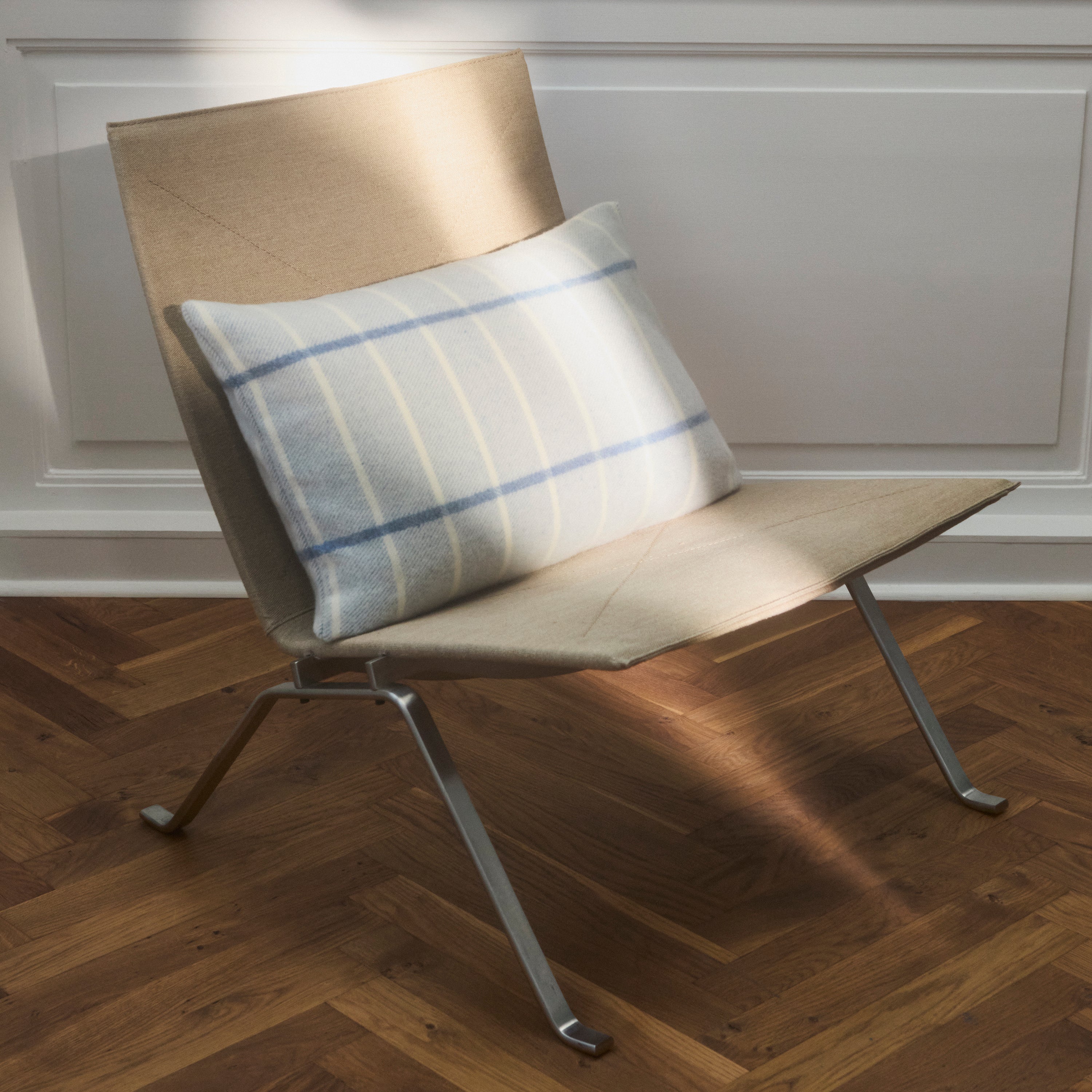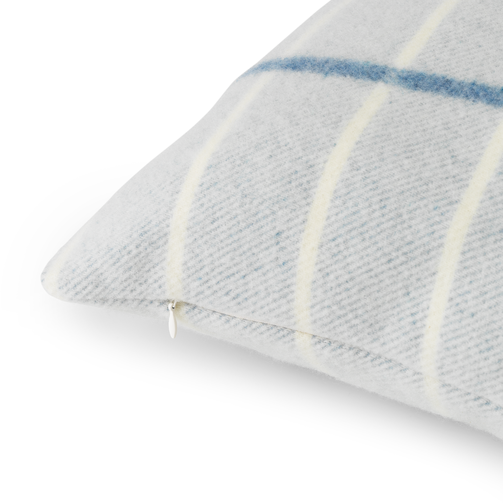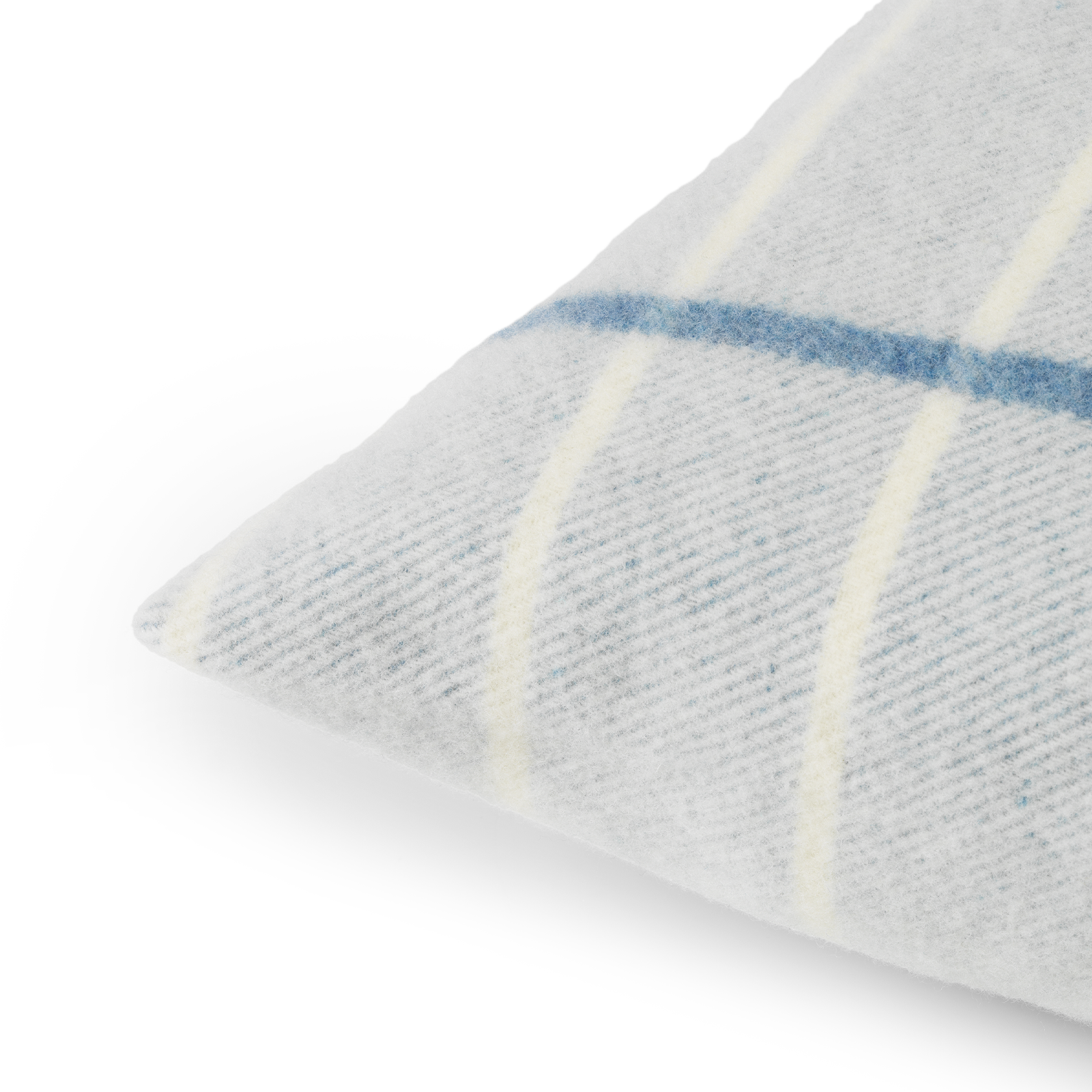 Tartan puden har et elegant og klassisk ternet mønster. Kombination af 90 % merinould og 10 % cashmere gør puden ekstra blød og uldens fine struktur tilføjer en særlig lethed. Den er vævet i blå og hvide farver.
