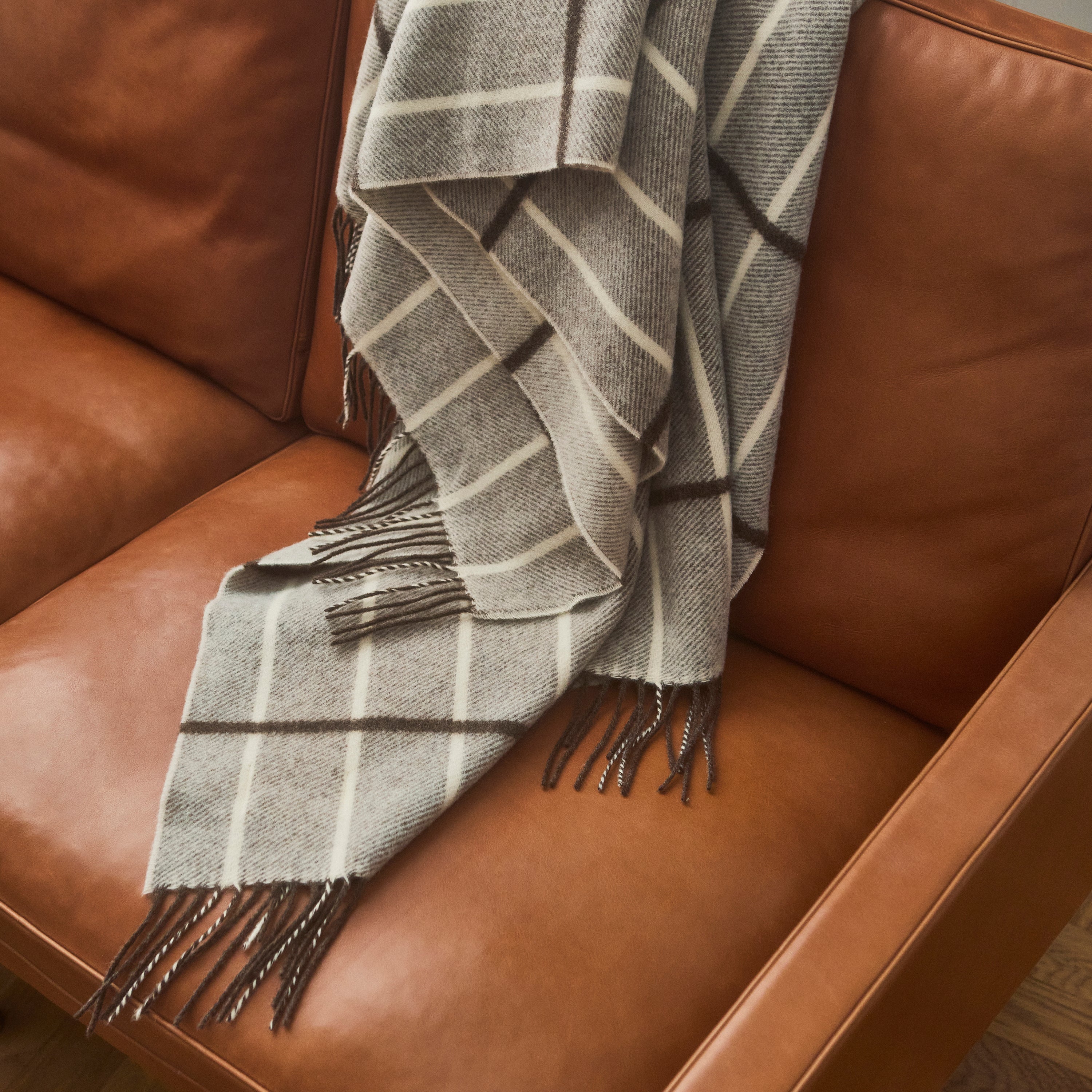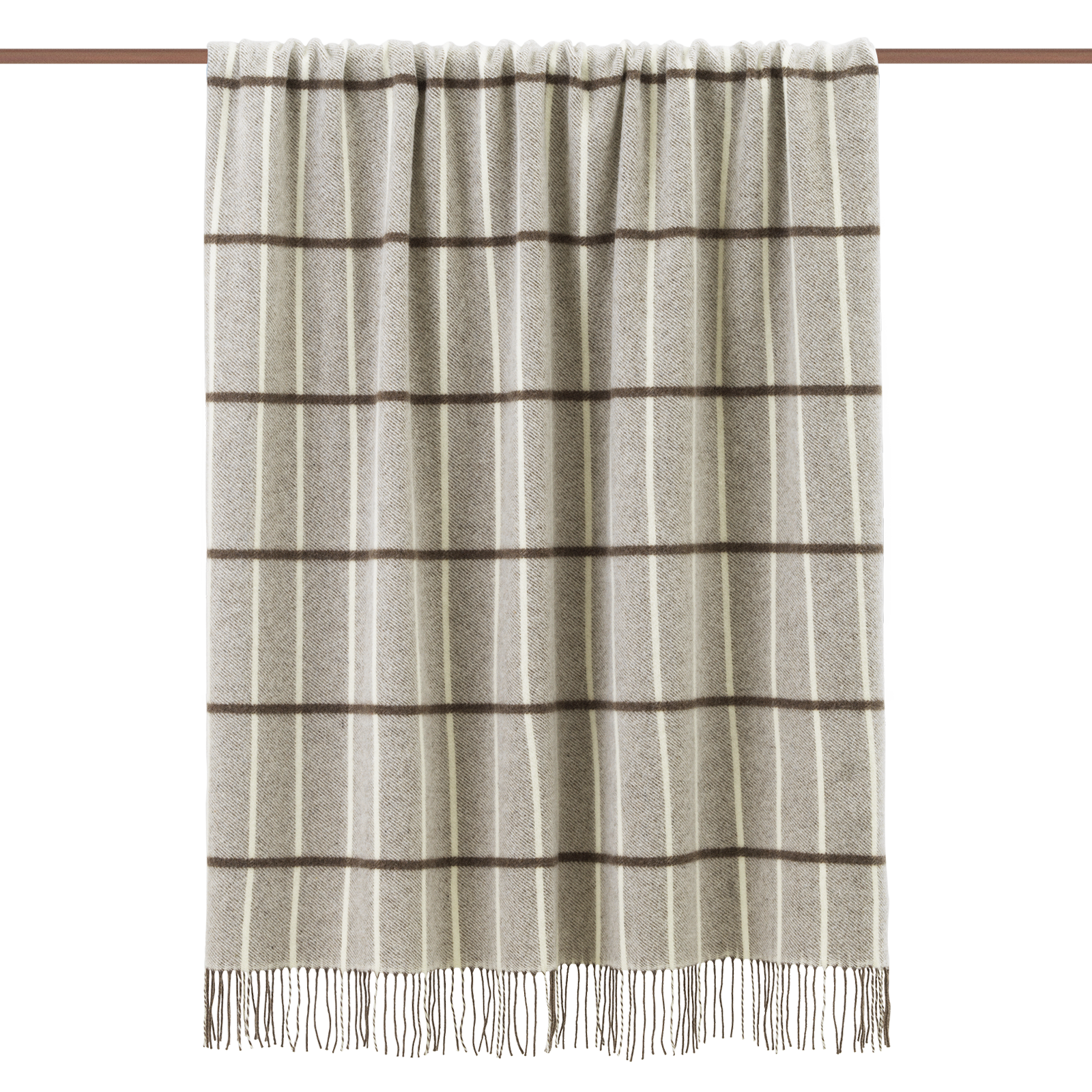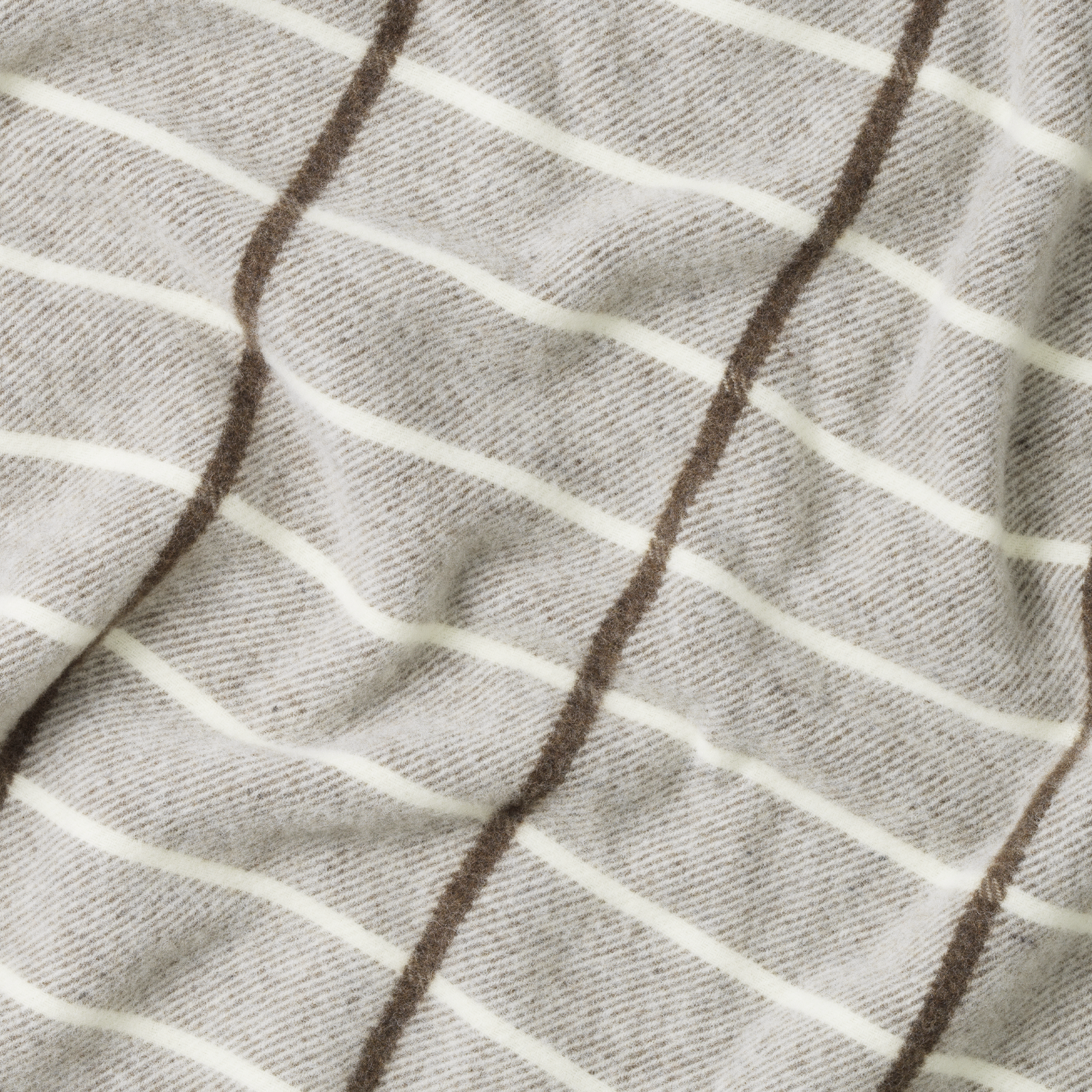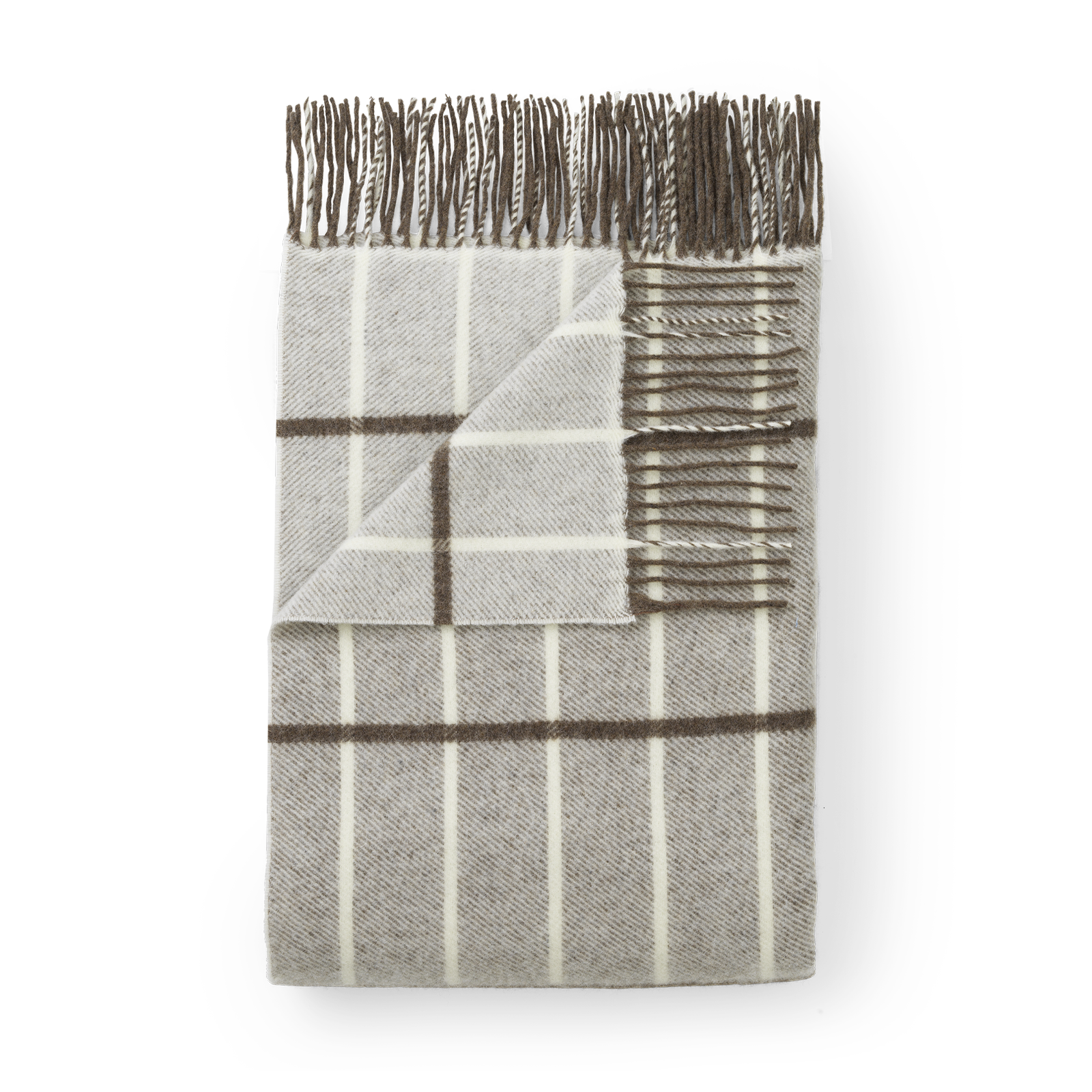 Tartan plaiden har et elegant og klassisk ternet mønster. Kombination af 90 % merinould og 10 % cashmere gør plaiden ekstra blød og uldens fine struktur tilføjer en særlig lethed. Den er vævet i brune og hvide nuancer og er afsluttet med frynser i top og bund.