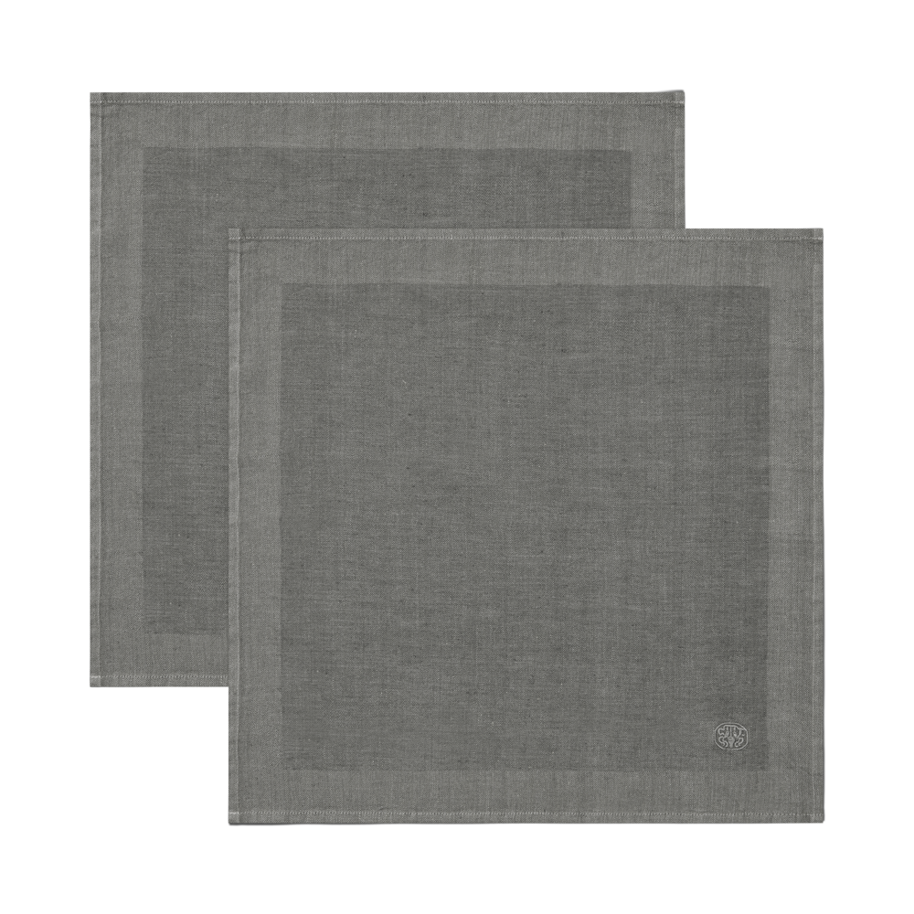 Med sit enkle design og sin dybe mørkegrå farve er hørservietten med det broderede logo en smuk tilføjelse til borddækningen. Den er flot i en klassisk opdækning, men den er også fin i en mere uformel sammenhæng, hvor bordet dækkes uden dug. Brug hørservietten til en større middag, til det enkle morgenmåltid eller ved havebordet.