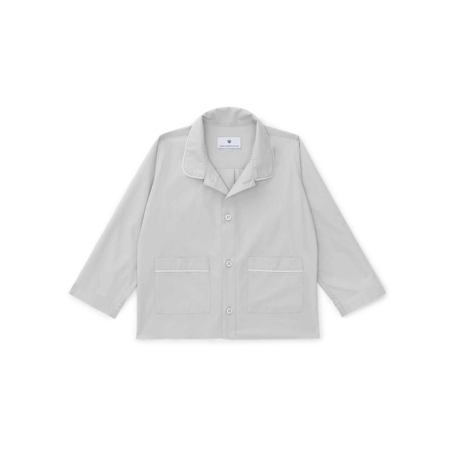 Unisex pyjamas til børn percalevævet i supimabomuld. Platinium Grey er en lys og rolig nuance af grå.