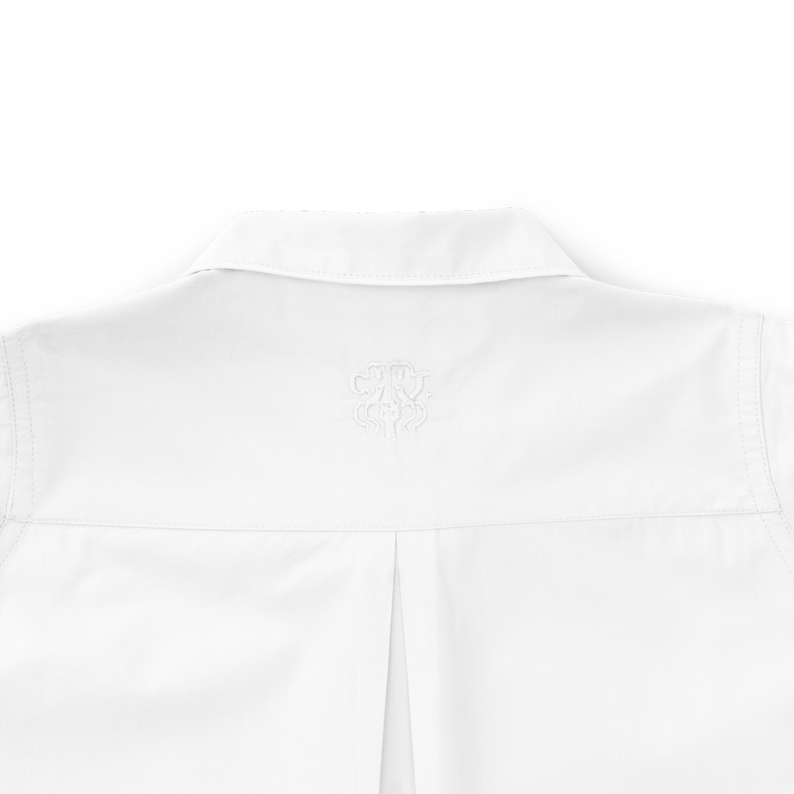 Skjorten har sideslidser, brystlomme, afrundet krave og Georg Jensen Damasks ikoniske logo broderet på bærestykket i nakken. Bukserne har en bred og behagelig elastik i taljen og lommer. Bukse- og ærmelængde kan let tilpasses med et opsmøg, hvor indersiden har en elegant piping.