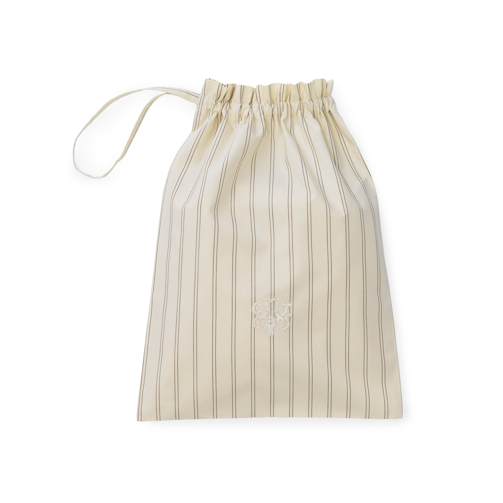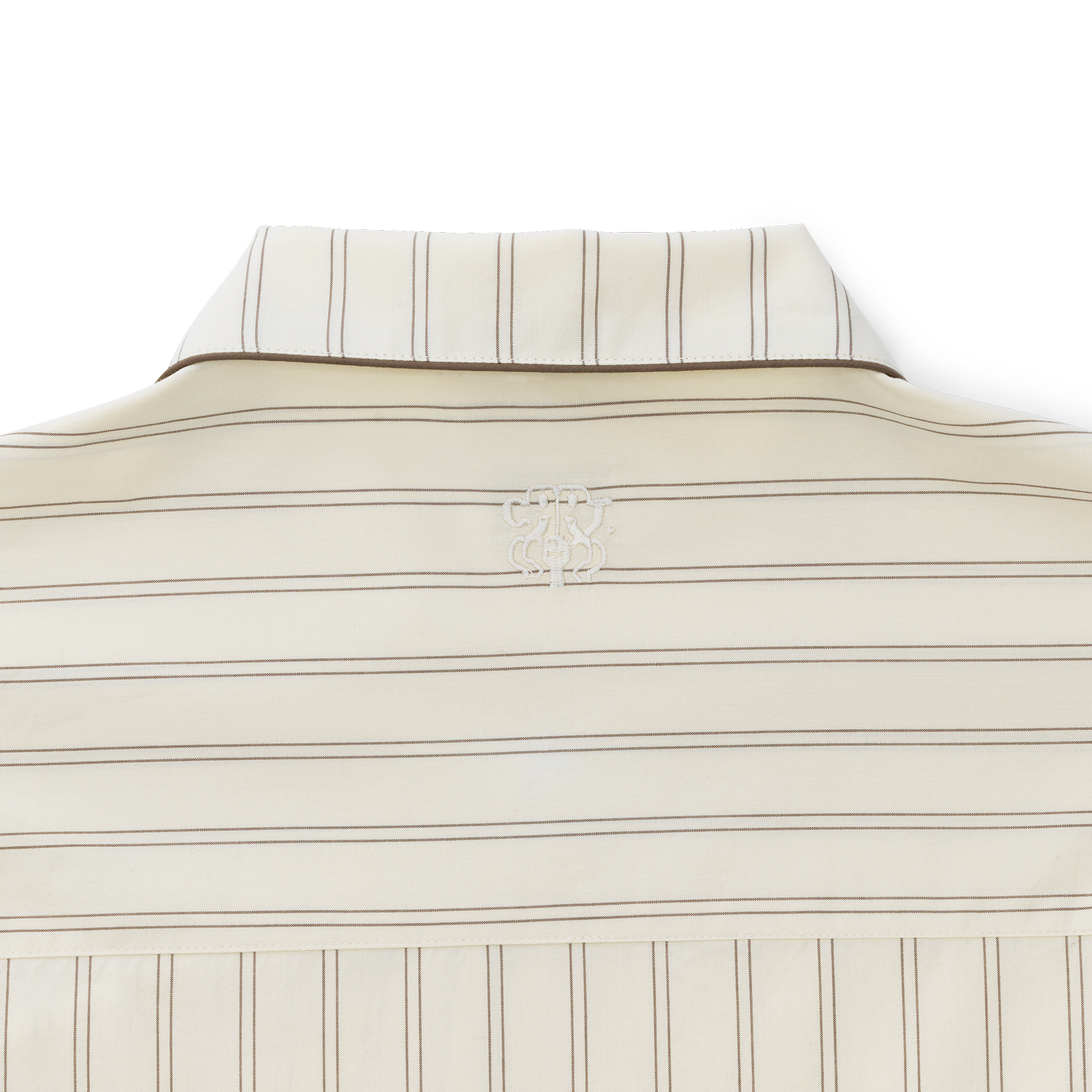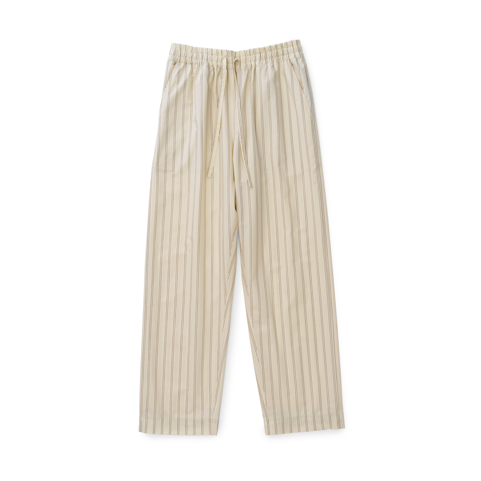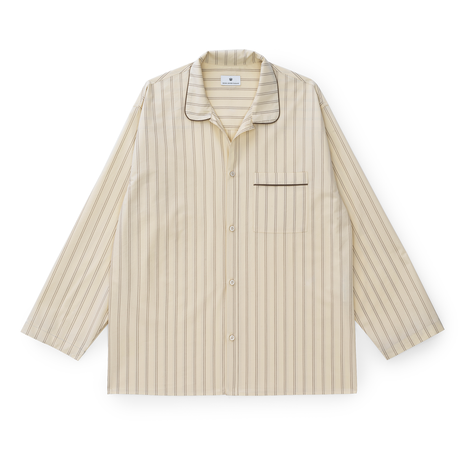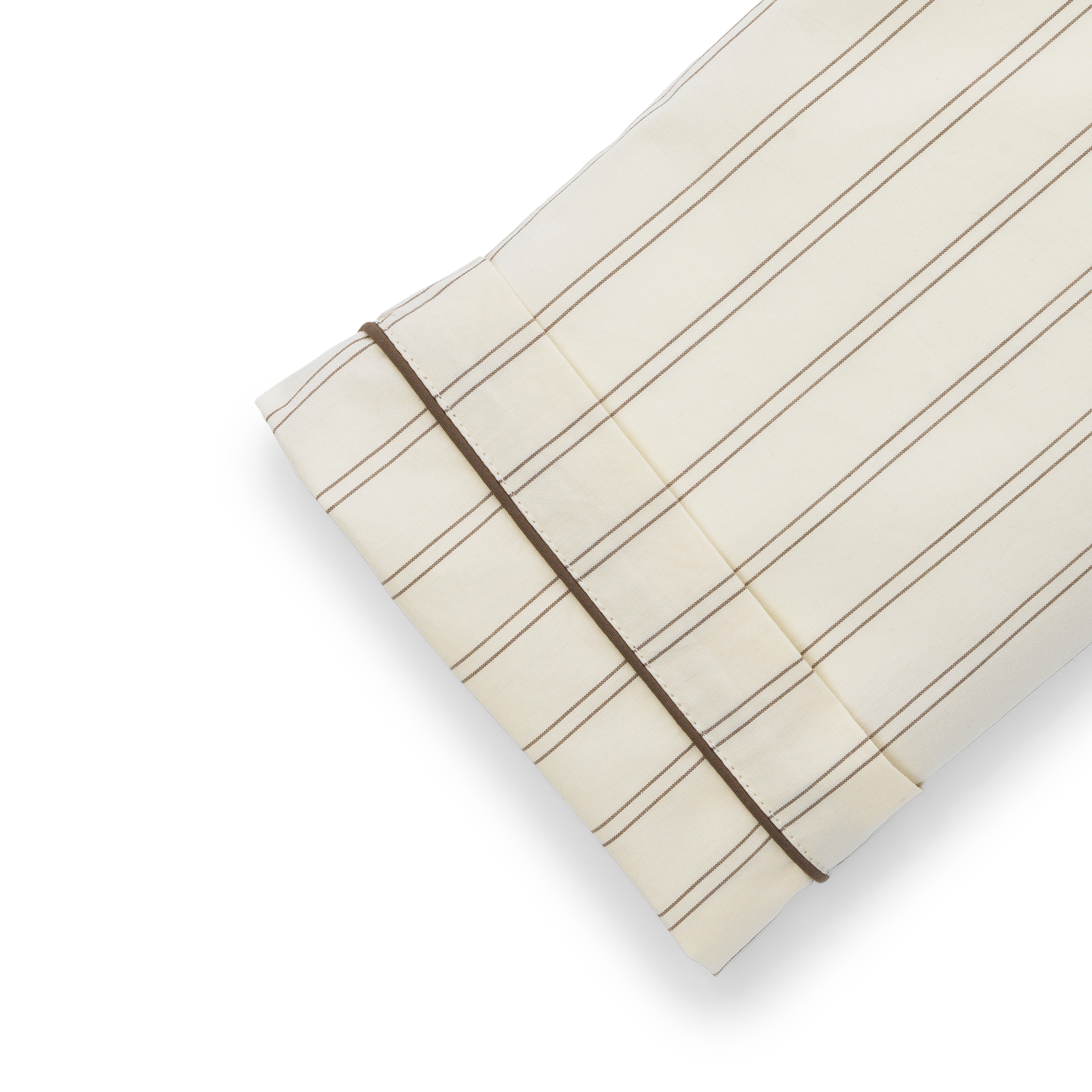 Unisex pyjamas percalevævet i supimabomuld. Pyjamassen har et klassisk snit, elegante pipings og slanke nålestriber i Walnut med en baggrund i farven Archive Linen - en lys, nøddefarvet nuance.