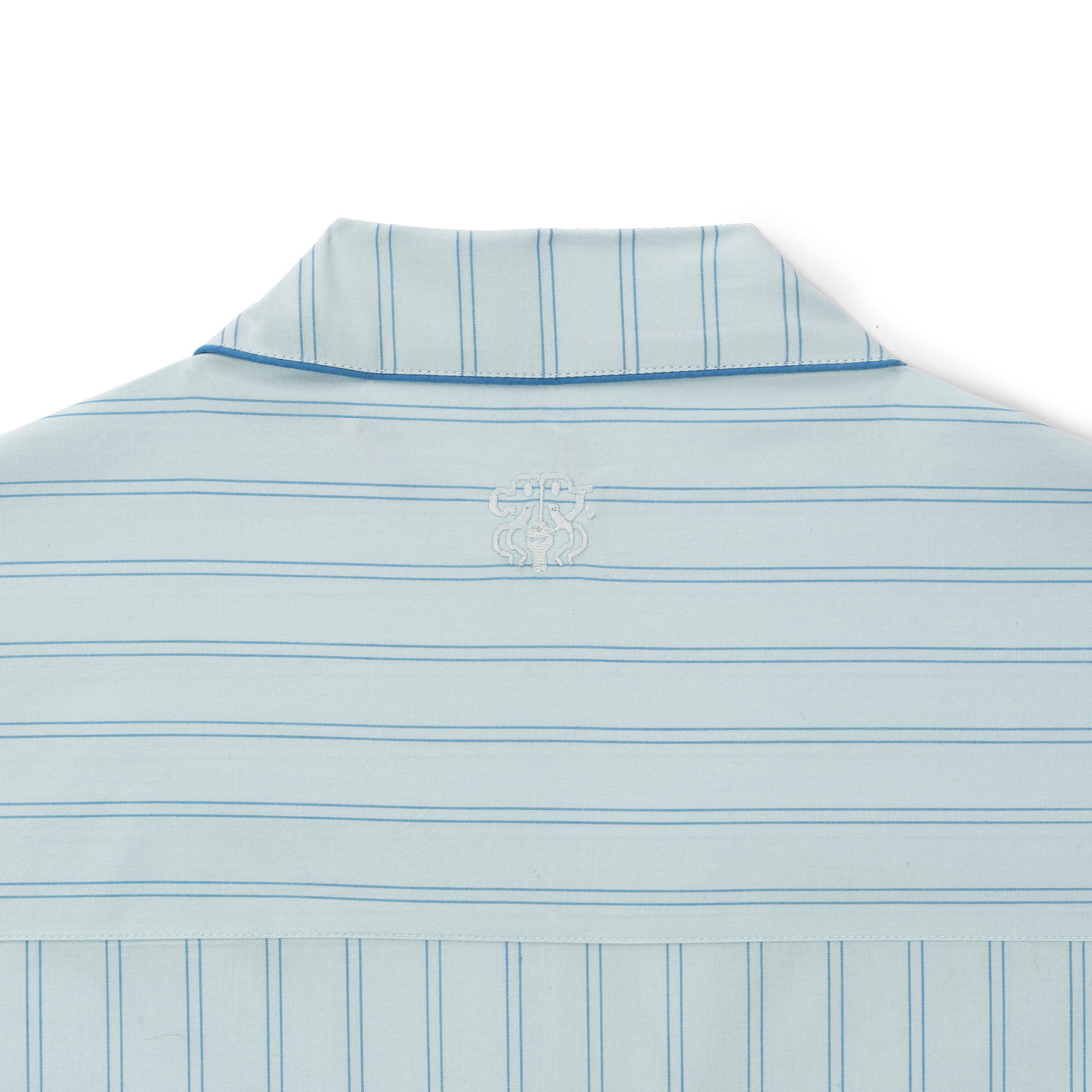 Unisex pyjamas percalevævet i supimabomuld. Pyjamassen har et klassisk snit, elegante pipings og slanke nålestriber i Bright Blue med en baggrund i farven Minimal Blue - en helt let variant af lyseblå med et strejf af aqua.