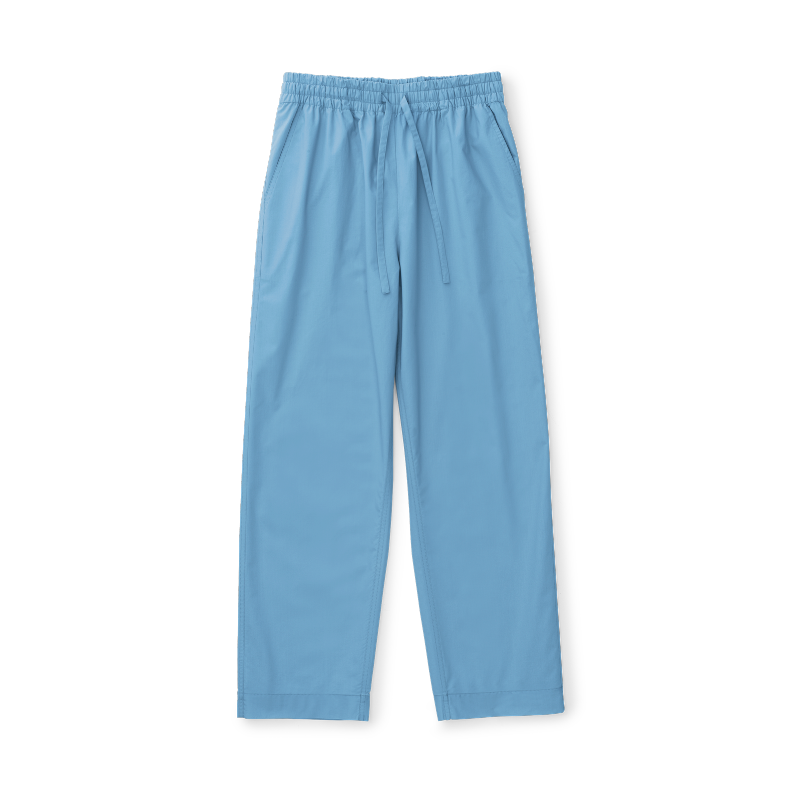 Unisex pyjamas percalevævet i supimabomuld. Pyjamassen har et klassisk snit og elegante, hvide pipings. Bright Blue er en mættet nuance af blå med referencer til den klare sommerhimmel.
