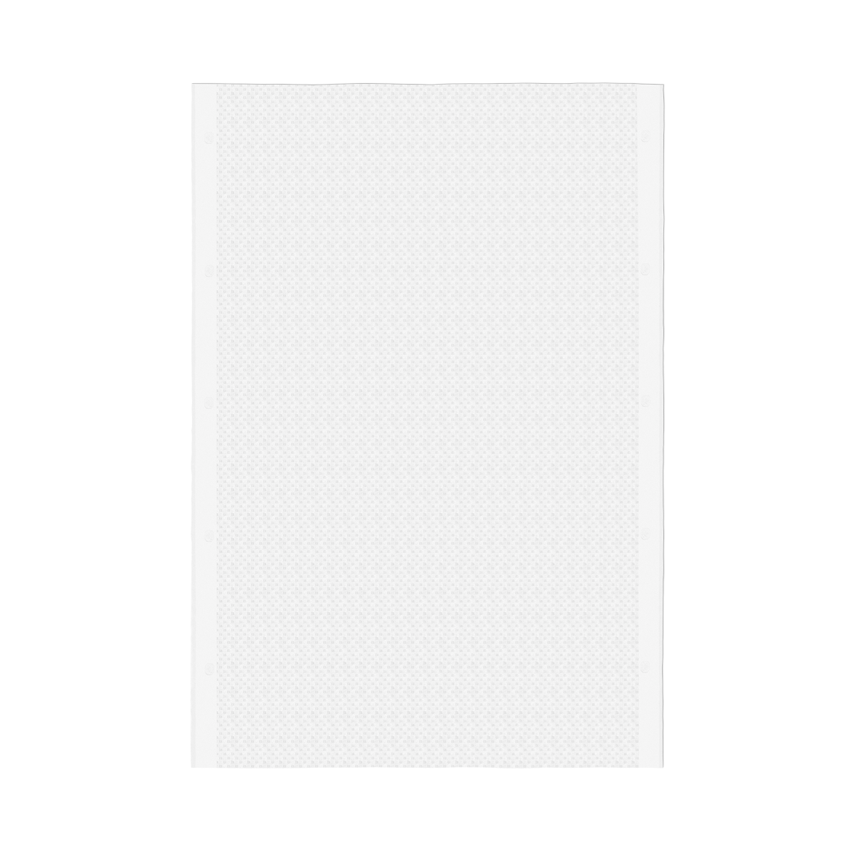 En raffineret, hvid damaskdug, der inviterer vinteren med til bords i form af de fineste, stiliserede snefnug. Fortolkningen af snefnuggets geometri er dog så stram, at dugen også kan benyttes på andre tider af året, hvor den hvide dug løfter borddækningen og stemningen.