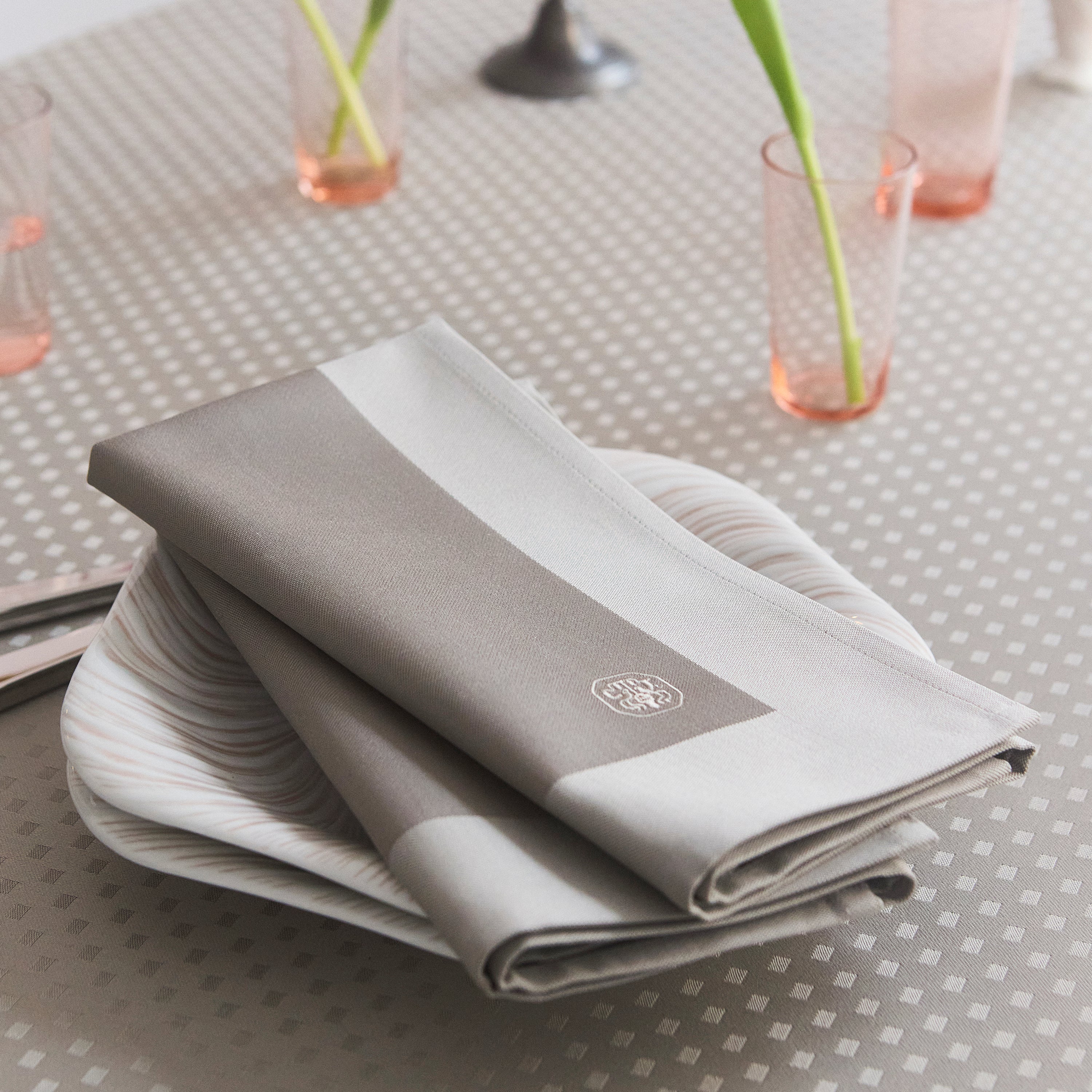 Fuldend borddækningen med damaskvævede servietter eller hørservietter.