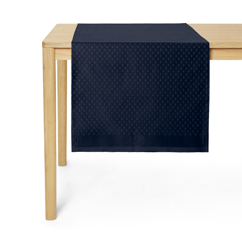 Den intense dybde i farven Dark Blue forstærker det rene design og lader snefnuggene tone frem, som var de stjerner på aftenhimmelen. En nobel og eksklusiv bordløber, der ikke kalder på en særlig indretningsstil, men fuldendes i opdækningen med tilbehør efter humør, årstid og måltid.