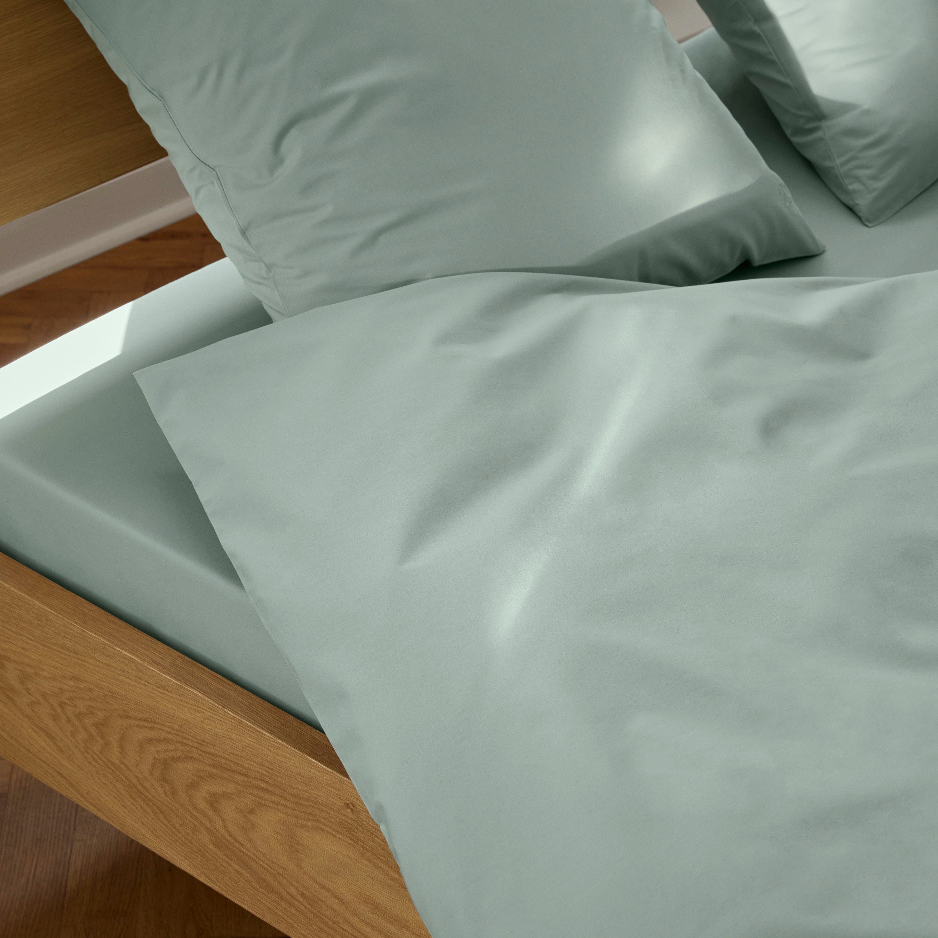 Supima Percale serien rummer alt fra gavl- og hovedpuder til dynebetræk og lagner i farver som let grå, lys grøn, kølige blåtoner og varme jordfarver. Med bomuldens lange fibre får sengetøjet en særlig smuk og meget ensartet farvetone.