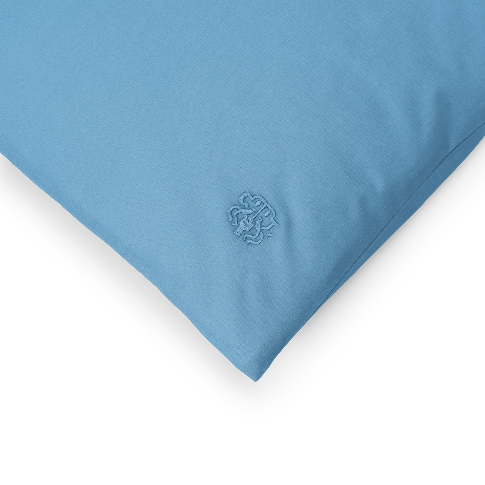 Hovedpudebetrækket har kuvertlukning og bærer Georg Jensen Damasks ikoniske logo som et diskret broderi. Bright Blue er en mættet nuance af blå med referencer til den klare sommerhimmel.