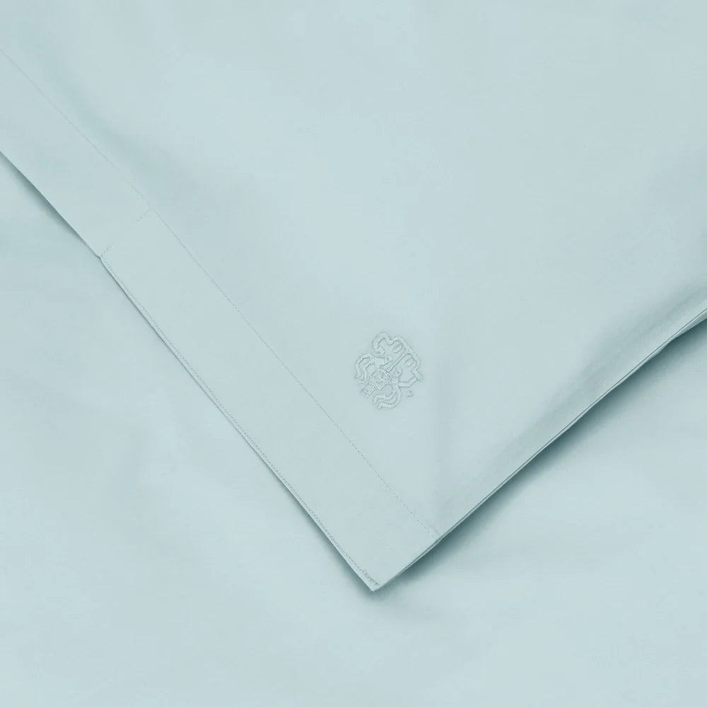 Hovedpudebetrækket har kuvertlukning og bærer Georg Jensen Damasks ikoniske logo som et diskret broderi. Minimal Blue er en helt let variant af lyseblå med et strejf af aquanuancer.
