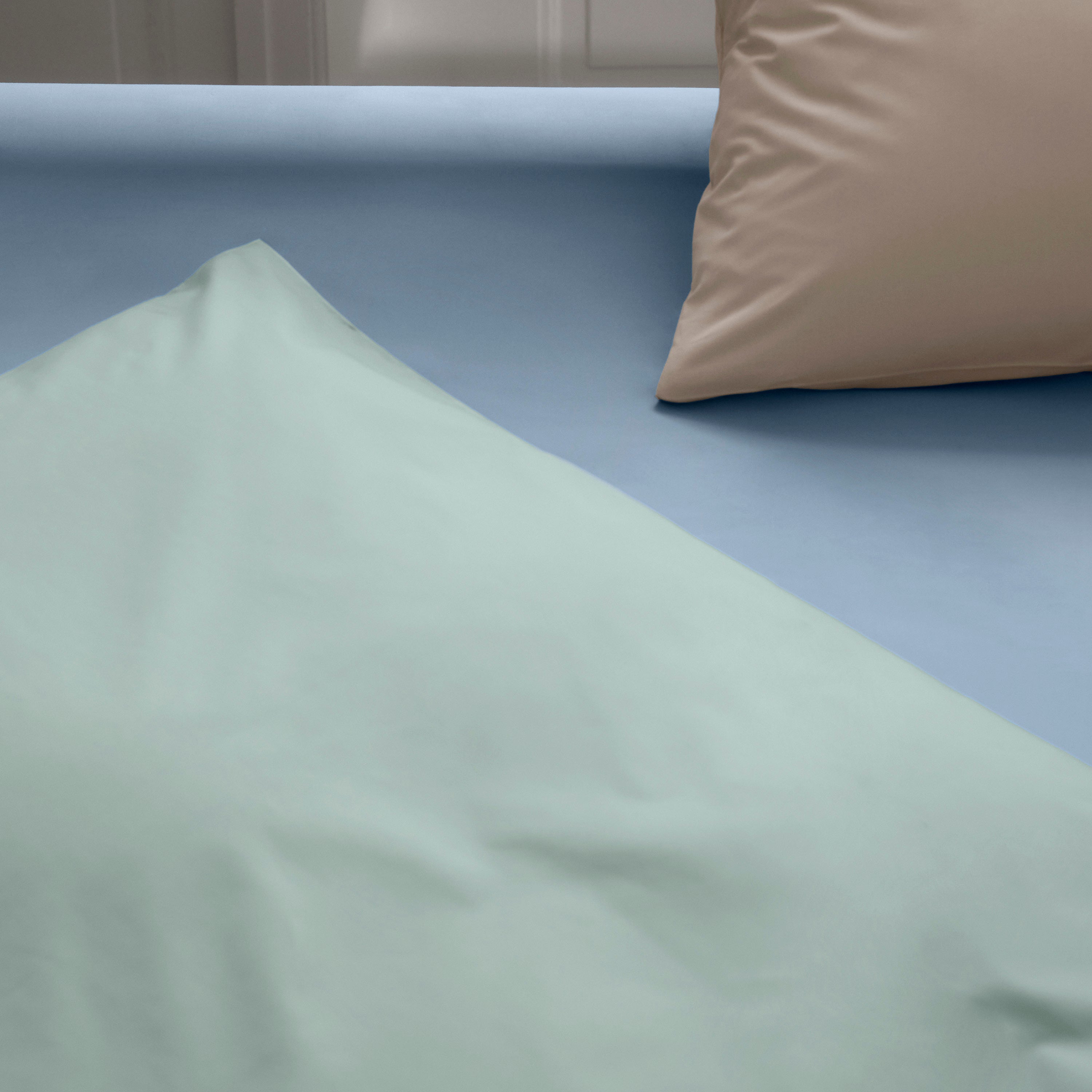 Supima Percale serien rummer alt fra gavl- og hovedpuder til dynebetræk og lagner i farver som let grå, lys grøn, kølige blåtoner og varme jordfarver. Med bomuldens lange fibre får sengetøjet en særlig smuk og meget ensartet farvetone.