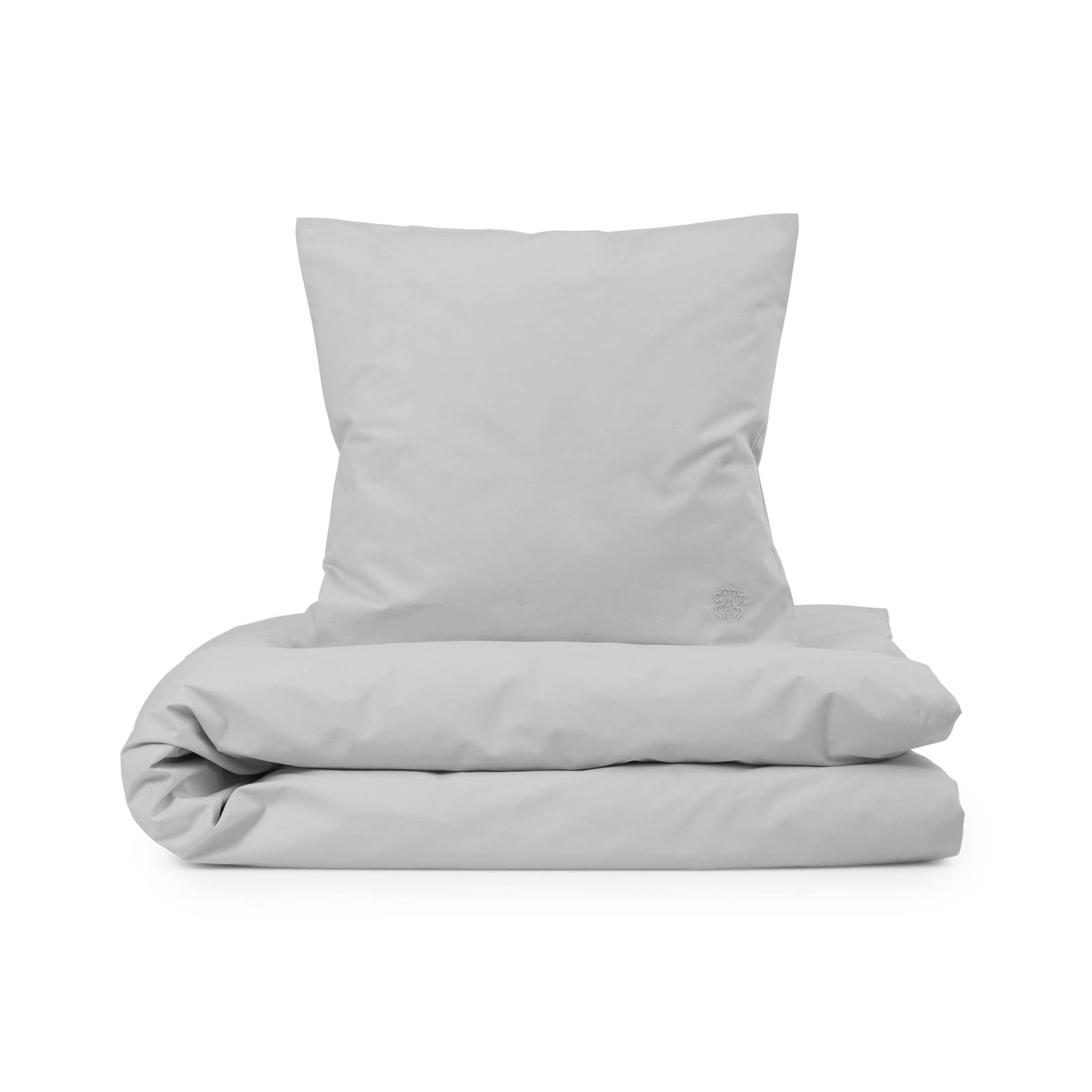 Dynebetrækket lukkes med bændler og hovedpudebetrækket har kuvertlukning. Sengesættet bærer Georg Jensen Damasks ikoniske logo som et diskret broderi. Platinium Grey er en lys og rolig nuance af grå.