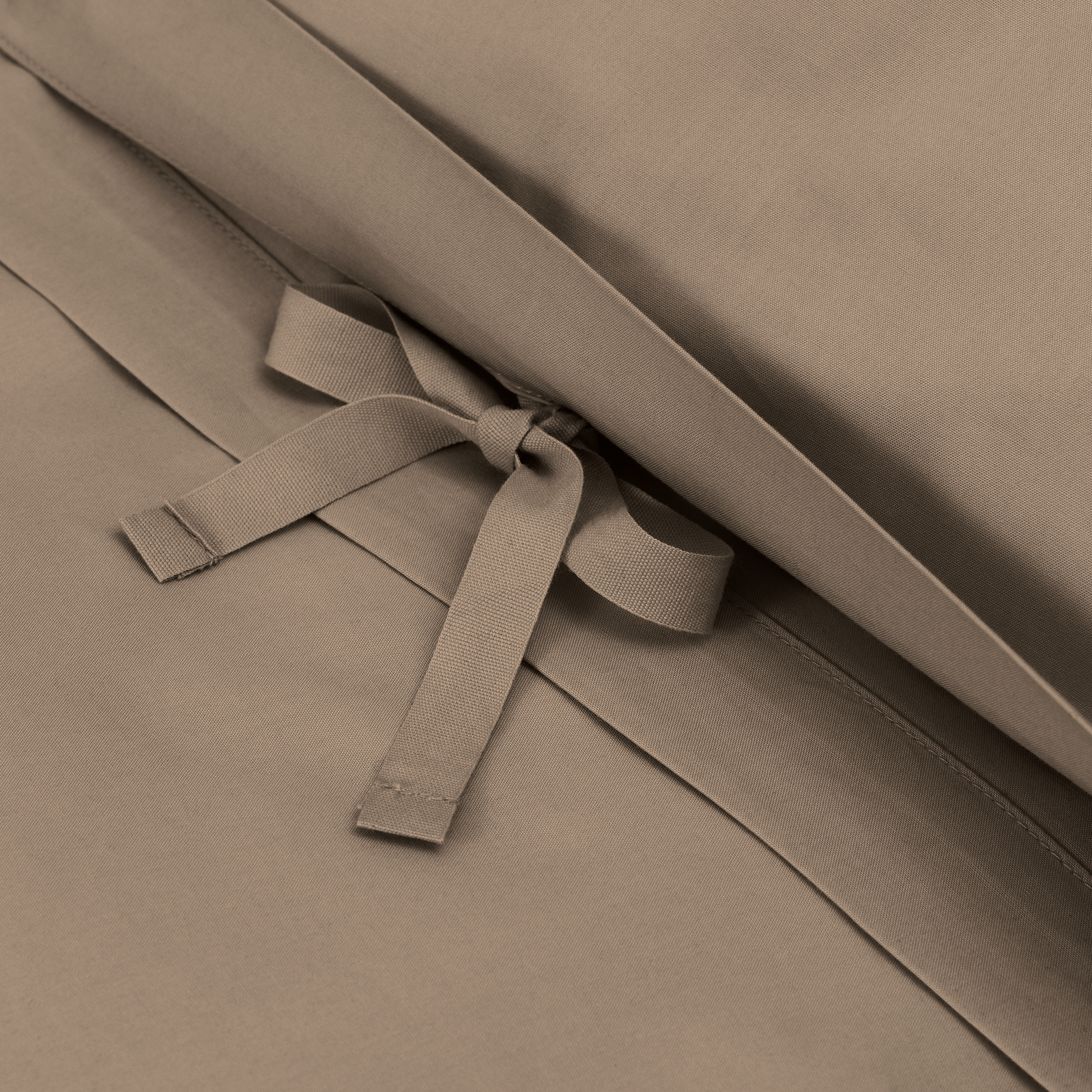 Dynebetrækket lukkes med bændler og hovedpudebetrækket har kuvertlukning. Sengesættet bærer Georg Jensen Damasks ikoniske logo som et diskret broderi. Walnut er en dyb, nøddebrun farve.