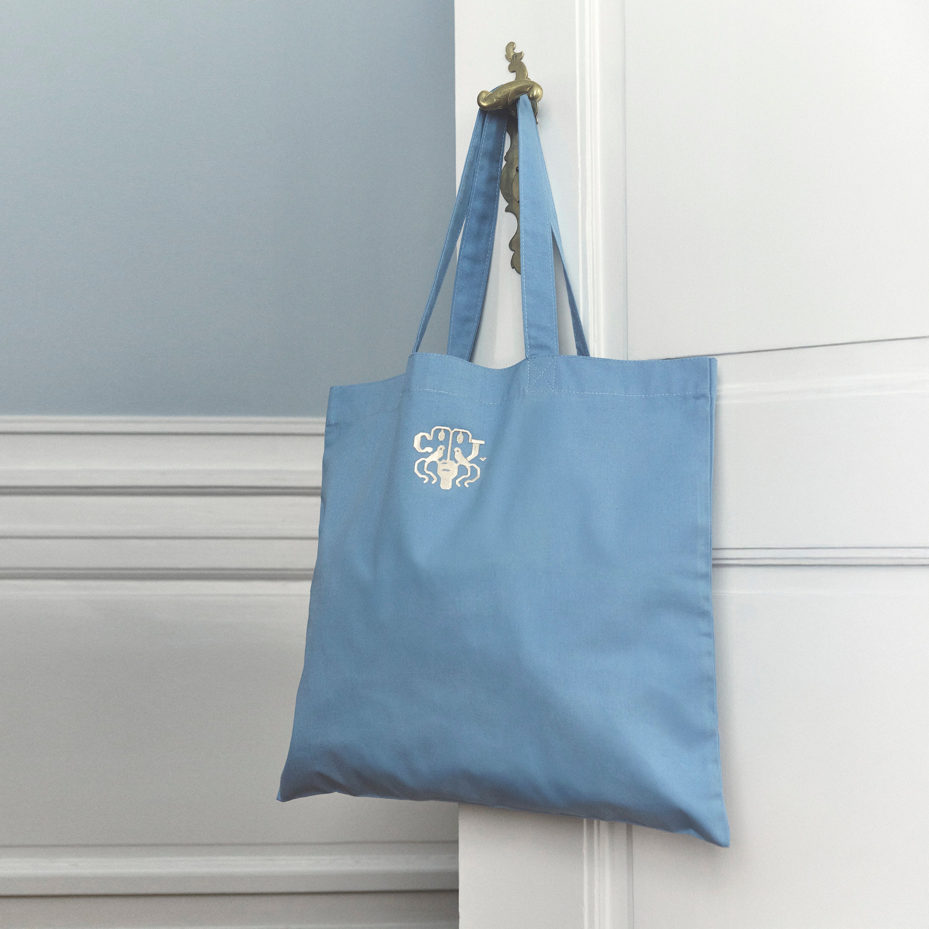 Praktisk kanvastaske i klar, blå farve. Den rummelige taske er vævet i 100 % bomuld og bærer Georg Jensen Damasks ikoniske logo som et smukt broderi.
